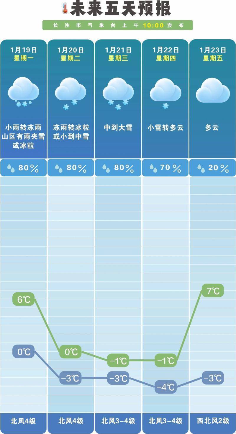 据预报,18日到19日白天,阴天转小雨,北风加大至5到6级、阵风8到9级,3℃至14℃。19日晚上,大部分地区小雨转冻雨、山区有雨夹雪或冰粒,北风4到5级,0℃至3℃,但这仅仅是序幕。20日白天,冻雨转冰粒或小到中雪、山区大雪,北风4级,-2℃至0℃。20日晚到22日白天,中到大雪、山区大到暴雪,北风3到4级,-3℃至-1℃。22日晚上到23日,多云到晴天,北风3级,-4℃至6℃。