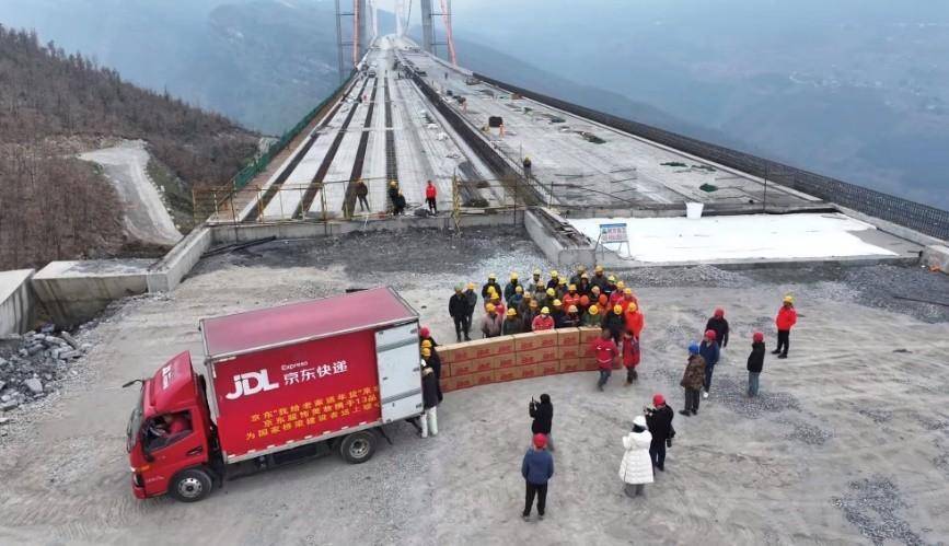 1月28日,这份情谊翻山越岭抵达贵州山区。京东服饰美妆走进“世界第三高桥”“世界第一高六车道桥”——贵州安盘高速天门特大桥建设一线,为在严寒中坚守岗位的桥梁建设者们送去一整车精心准备的保暖年货。