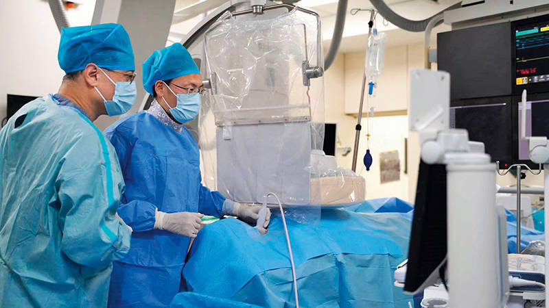 南京鼓楼医院医生王雷(左)和张峰在为患者治疗(2026 年 3 月摄) 受访者供图一项技术攻克一种疾病